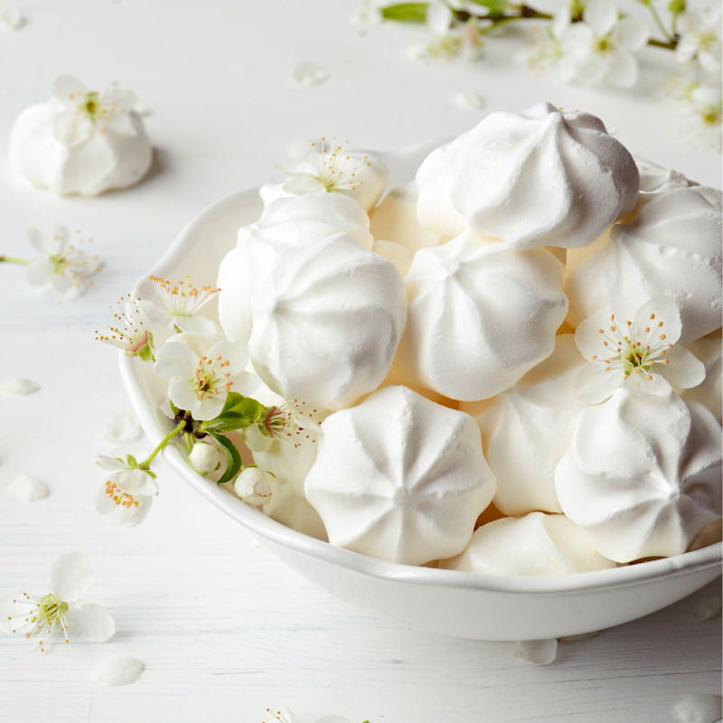 Clara de huevo de gallina, azúcar, estabilizador de espuma (E-1505), regulador de acidez (E-330).