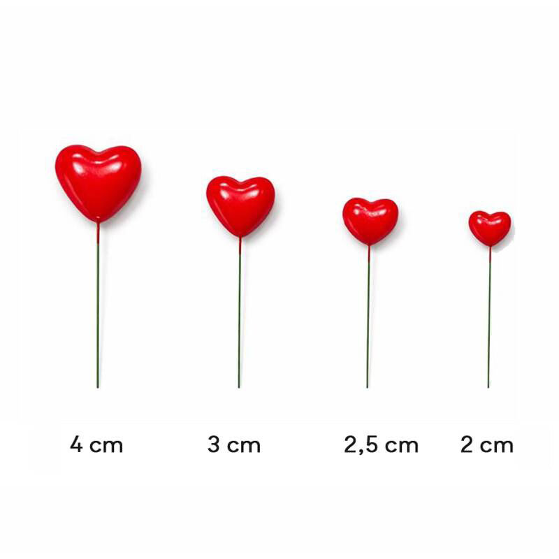 Las medidas de cada corazón son de 4, 3, 2.5 y 2 cm.