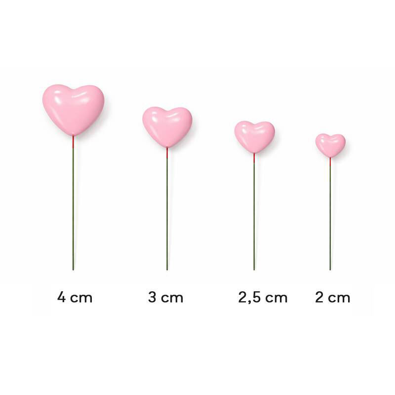 Las medidas de cada corazón son de 4, 3, 2.5 y 2 cm.